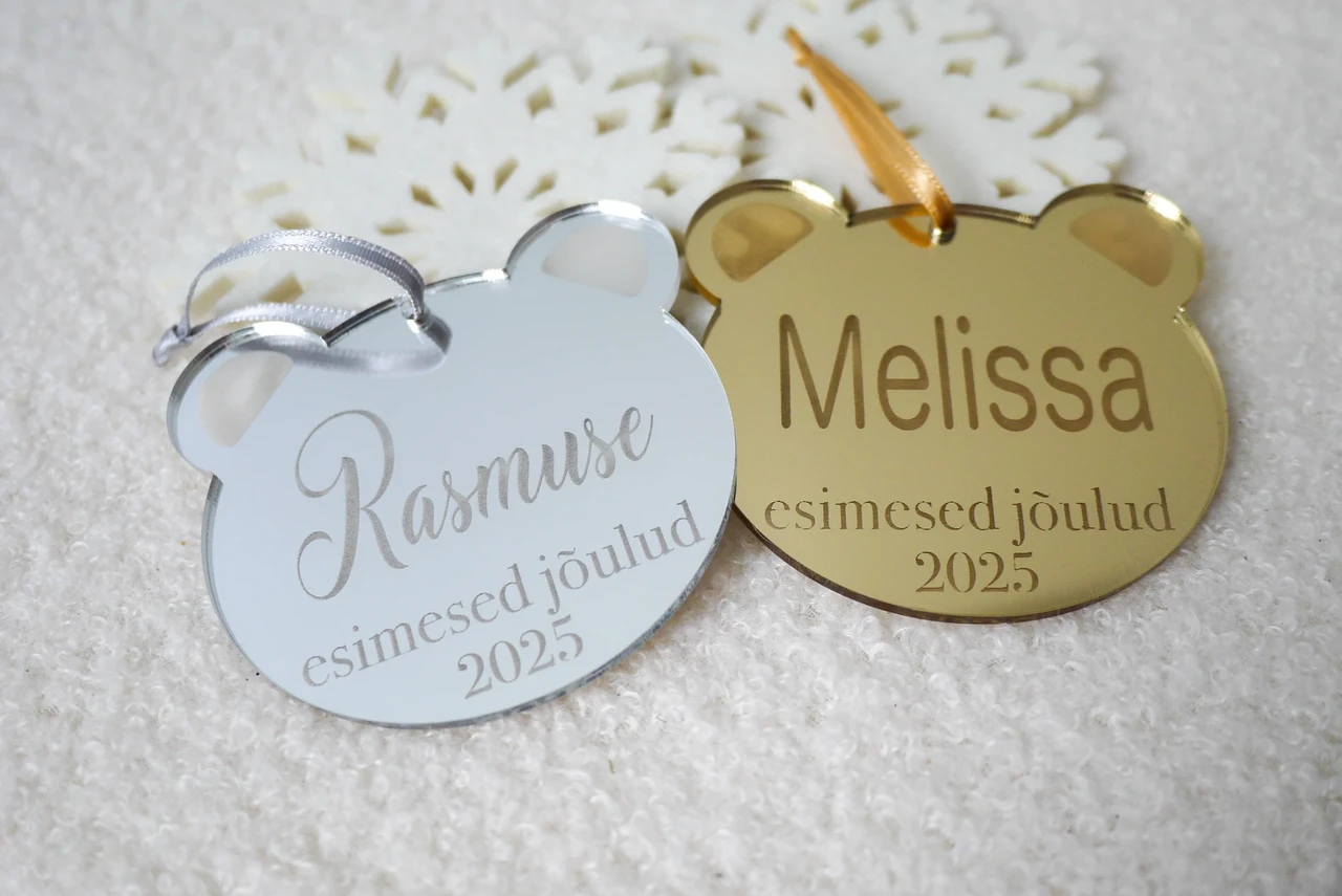 Tore jõuluehe mälestuseks teie pisikese esimestest jõuludest. Ehe on valmistatud peegelakrüülist. Kääname nime ka nii, et alumise tekstiga kokku sobiks.