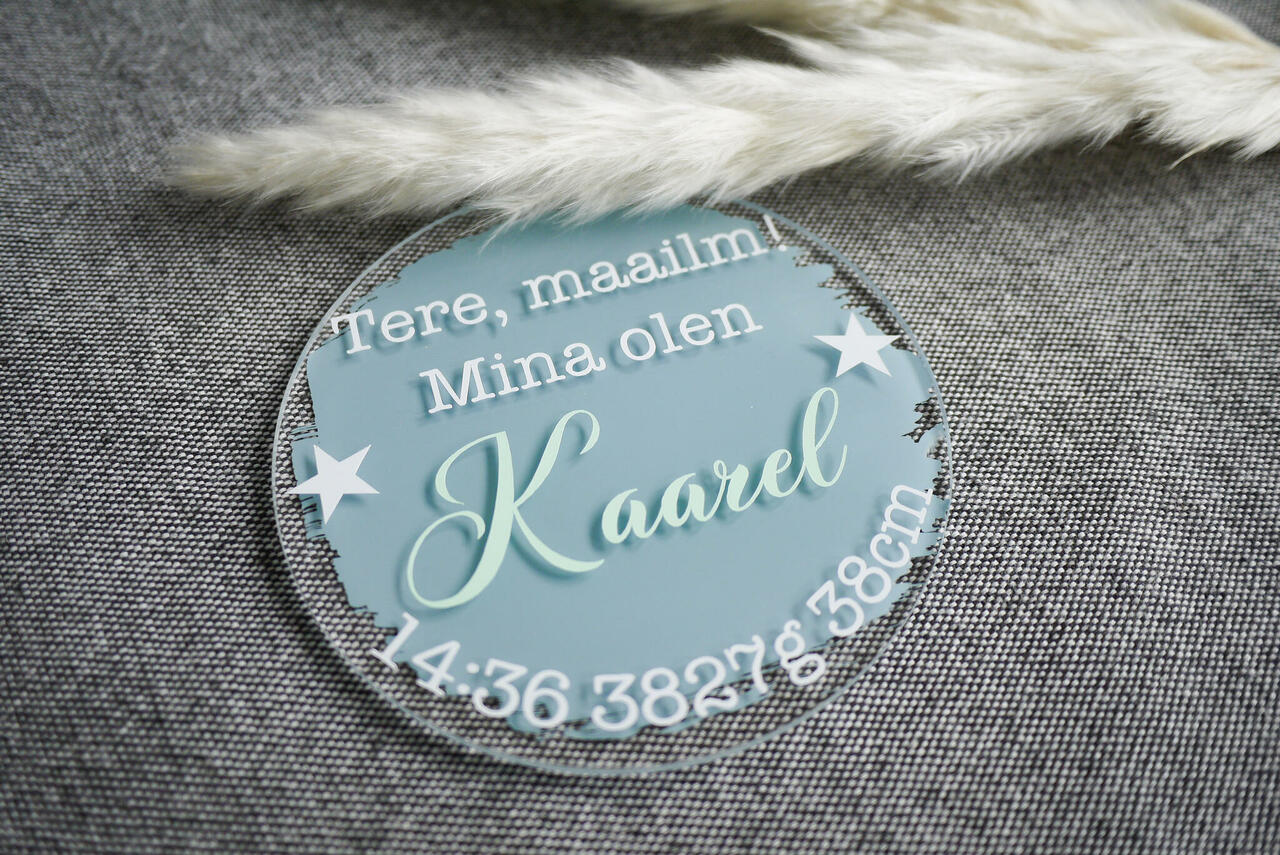Akrüülist beebikaart, millele mahub kõik oluline info.