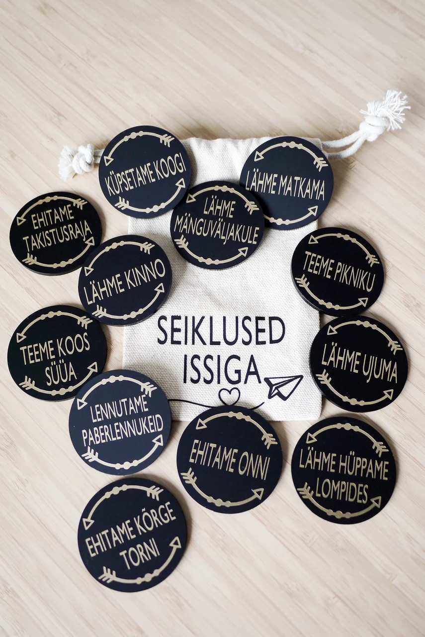 Soovi korral saab teksti kotil muuta ning ka mõne tegevuse millegi muu vastu välja vahetada. Anna sellest allpool olevas kastikeses teada. Uus tegevus võib olla kuni 3 sõna pikk, et ilusti ära mahuks.