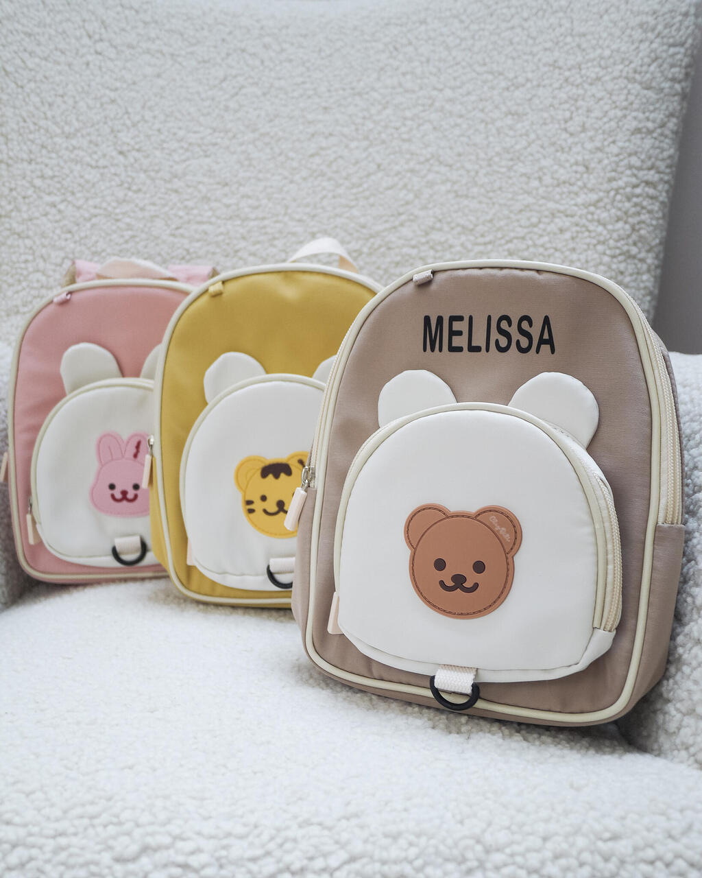 Armas seljakott väikelastele. Valikus kolm värvi, millel peal armsad loomakesed. Kotil on ka kõhul kinnitatav klamber ning mõnusalt pehmed sangad.