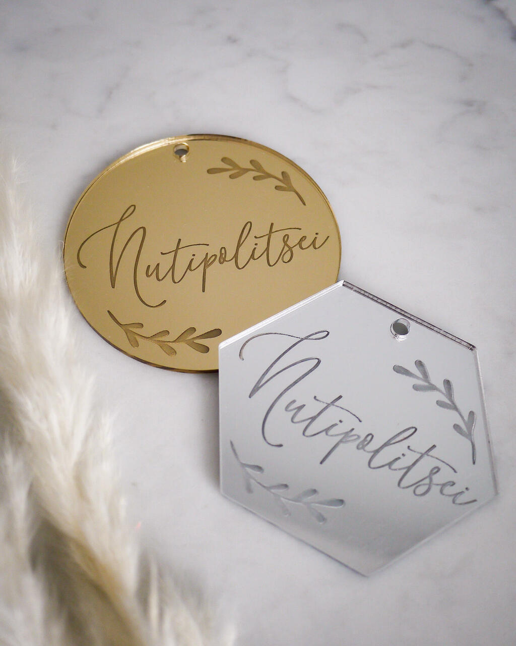 Peegelakrüülist ametimärgid. Kõik teie ideed ja soovid on oodatud
