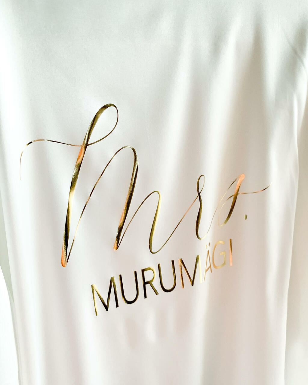 Mõnusalt pehme ja siidine hommikumantel. Ideaalne kandmiseks pulmahommikul nii pruudile kui ka pruutneitsidele. Kindlasti ka mõnus suvekuudel hommikukohvi juues. Seljale saad lisada teksti või disaini enda soovide järgi. Saadame kindlasti ka näidise ja arutame täpselt kõik läbi enne, kui hommikumantli valmis teeme.
