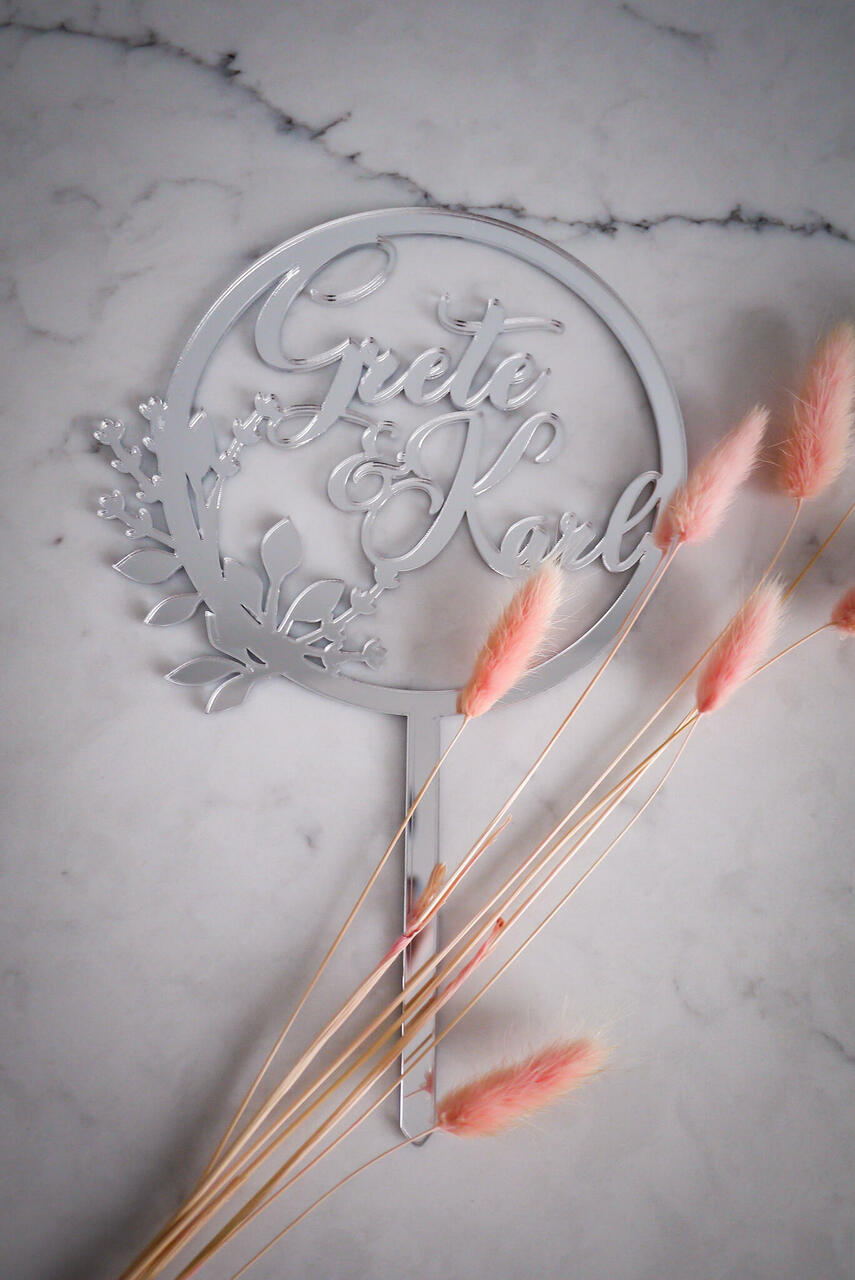 Ümmargune peegelakrüülist topper, millel ilusad lehekeste ja lillede detailid. Valikus kuldne ja